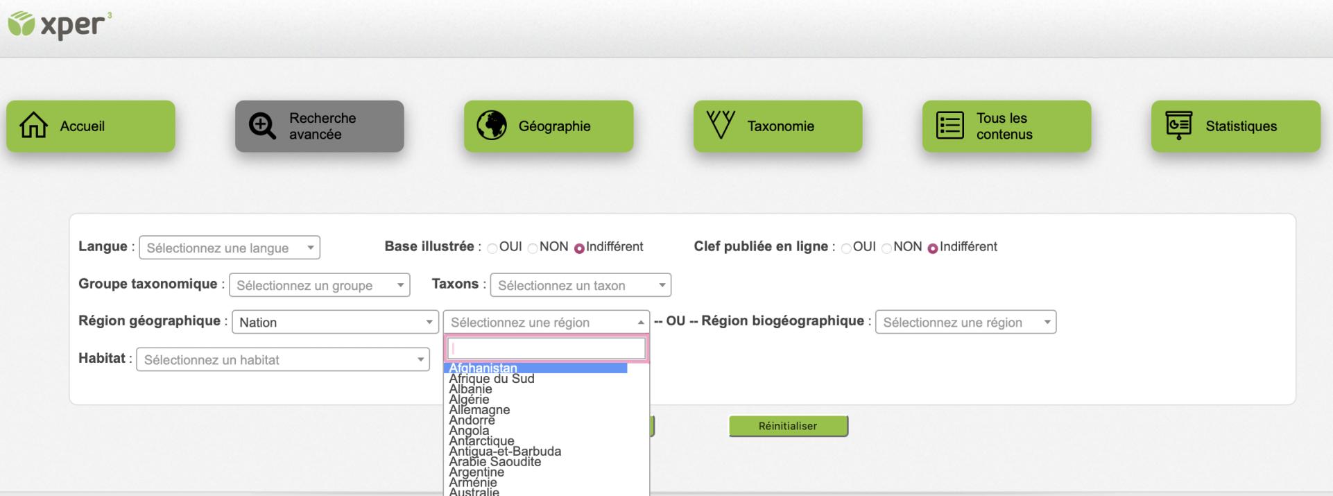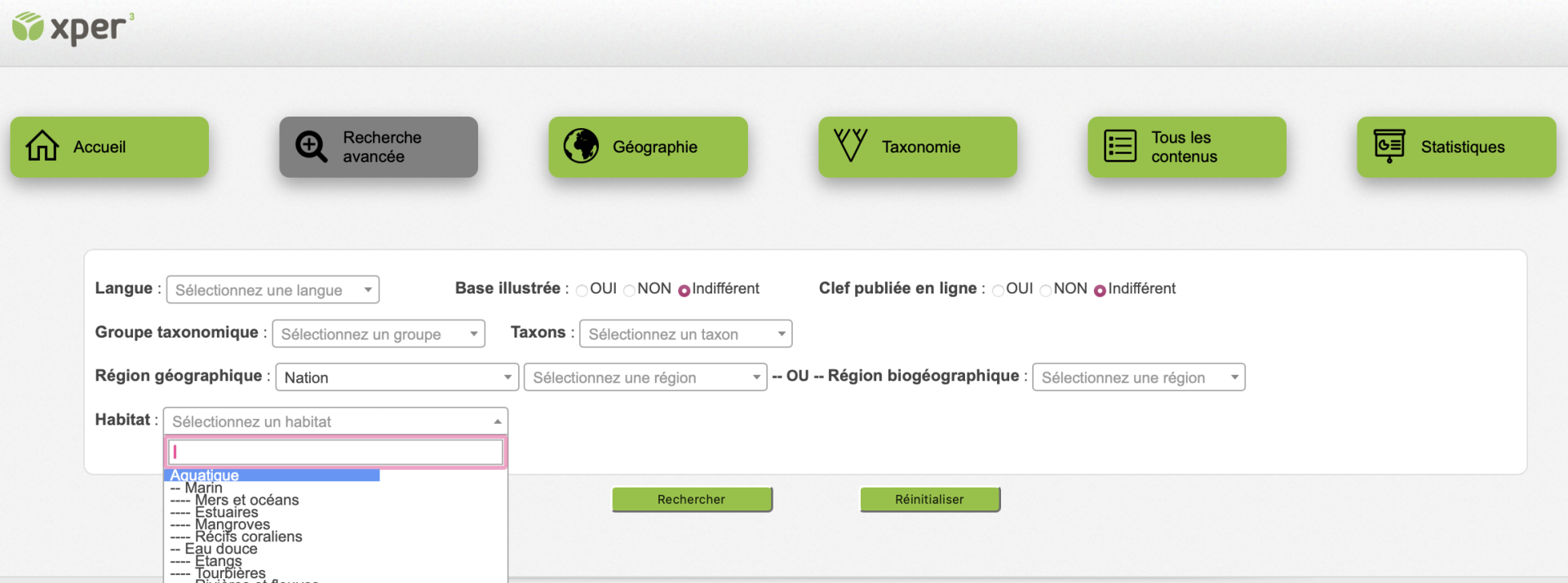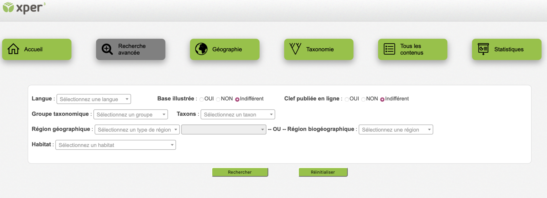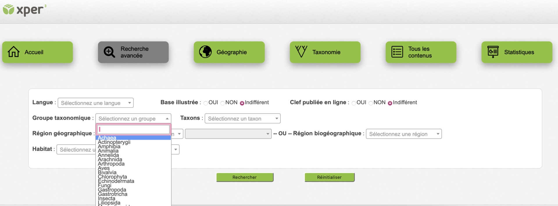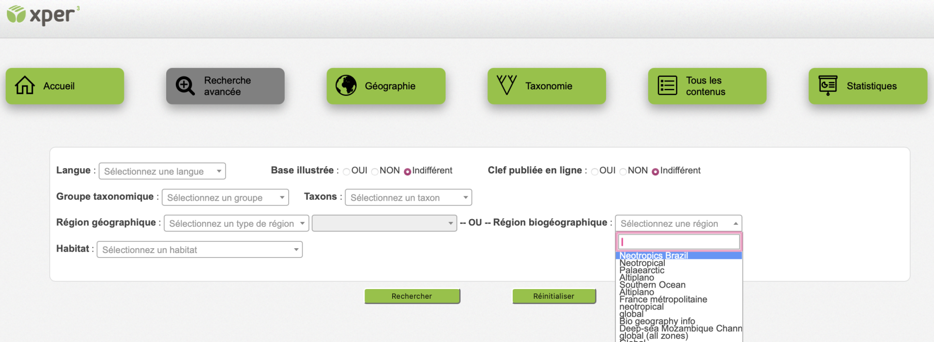 Ce site contient des informations sur les bases de connaissances Xper2 disponibles à ce jour. Vous pouvez y chercher celles qui vous intéressent, suivant le groupe d’organismes qu’elles décrivent, leur zone géographique, leurs milieu de vie, etc. Vous trouverez également toutes les informations qui concernent le logiciel Xper2, et des définitions de concepts en systématique et en biologie comparative (descripteurs, taxons…).